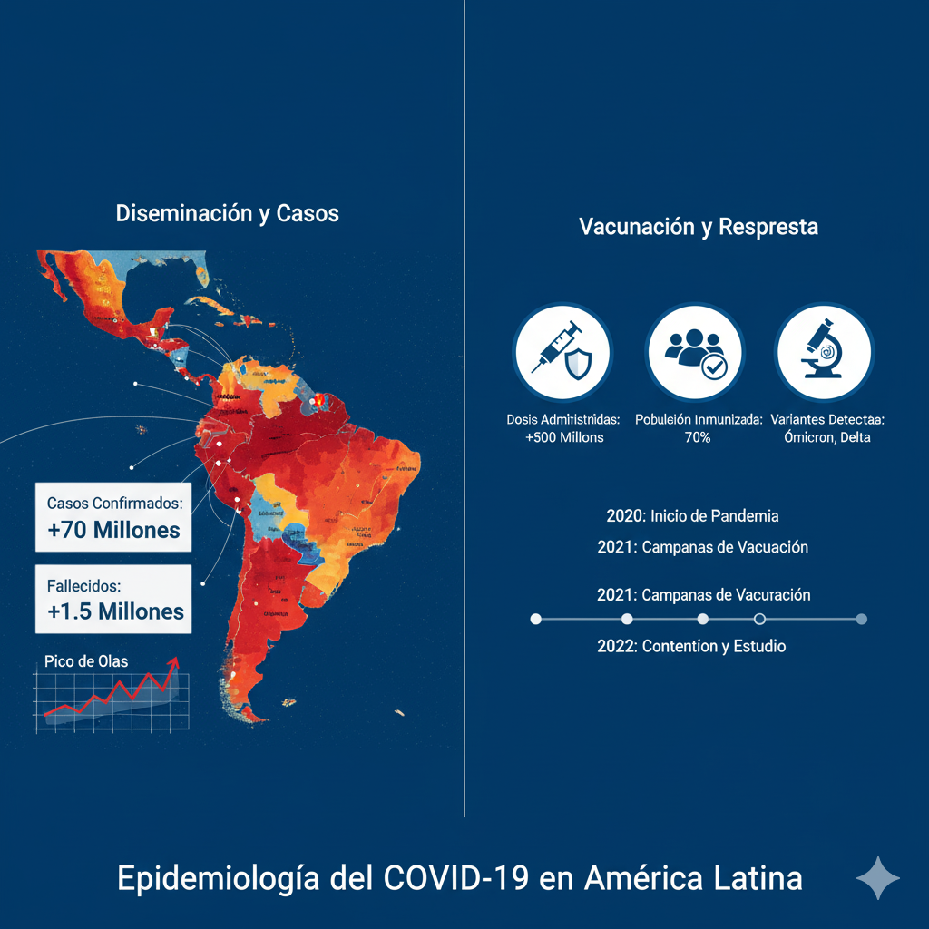 El síndrome respiratorio agudo severo (SRAS), es causado por el coronavirus (SARS-CoV-2); este utiliza el receptor de la enzima convertidora de angiotensina 2 (ACE2), para invadir los cuerpos humanos. En diciembre de 2019 surgió un brote sin precedentes de neumonía de etiología desconocida en la ciudad de Wuhan, provincia de Hubei en China. El brote se informó a la OMS el 31 de diciembre de 2019, quien el 11 de febrero lo denominó COVID-19. América Latina no fue la excepción a este problema de salud pública: el 25 de febrero de 2020, el Ministerio de Salud de Brasil confirmó el primer caso confirmado un hombre brasileño, de 61 años. Actualmente, pese a los rigurosos esfuerzos globales de contención y cuarentena, la incidencia de COVID-19 continúa aumentando, con 3 435 894 casos confirmados por laboratorio y más de 239 000 muertes en todo el mundo. En respuesta a este brote global, realizaremos una revisión, de la epidemiología a nivel de América Latina.