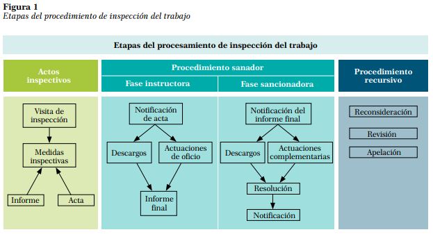 Por ende, después de haberse realizado esta etapa de investigación, de no haberse comprobado la infracción o en el caso de que la empresa hubiera subsanado la misma en el plazo otorgado por el inspector, se expide un Informe de Actuación Inspectiva. De lo contrario, se expedirá el Acta de Infracción, que da pie a la segunda etapa, el procedimiento sancionador, el cual cuenta con la fase instructora, en la que ya se tiene conocimiento de los hechos y medios probatorios recogidos por el inspector. No obstante, se respeta el derecho del infractor a realizar sus descargos; posteriormente, se expide el informe final de instrucción, en el que se declara si existe o no la infracción materia de controversia. La segunda fase es la sancionadora, en donde, debido al informe final de instrucción, se decide la aplicación de la sanción, teniendo igualmente el infractor derecho a realizar sus descargos y procediéndose a expedir la respectiva resolución, considerando lo actuado, siendo la última etapa la recursiva, en la cual se contemplan los recursos administrativos de reconsideración, apelación o revisión.