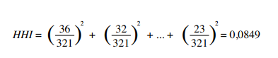 Por otra parte, el índice de Herfindahl-Hirschman (HHI) es una de las técnicas más empleadas con el fin de valorar la concentración de los mercados, el cual también es usual para medir el equilibrio en del deporte. De acuerdo con Espinoza (2023), este índice es una medida cuantitativa de la concentración del mercado de una economía, calculada sumando los cuadrados de las cuotas de mercado de todos los competidores. La magnitud del HHI es una que permite capturar la concentración competitiva en un mercado en donde se ofrecen bienes o servicios, y dentro del cual, de hecho, pueden existir oligopolios o monopolios.