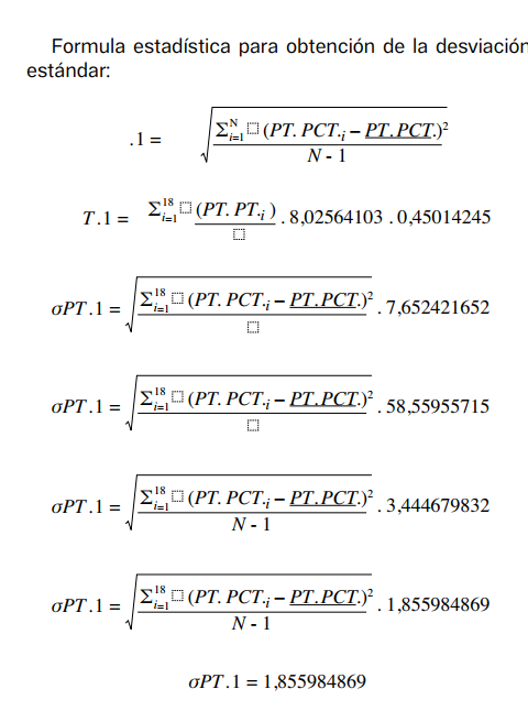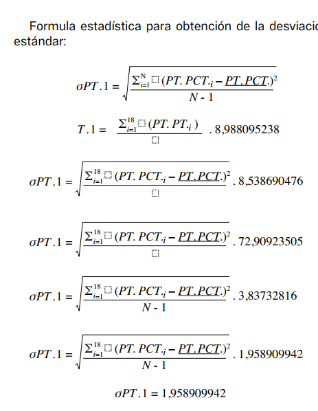 Para el análisis de datos, fueron realizadas técnicas estadísticas, como la media y medidas de dispersión, siendo aplicadas la siguiente fórmula estadística, extraída de Mahía Rey (2017), para encontrar la desviación estándar de los puntos logrados por los diferentes equipos que participaron en los campeonatos profesionales de 2019, 2020 y 2021, determinándose el equilibrio competitivo de dichos campeonatos, lo cual es ideal cuando la desviación estándar es 0. Sin embargo, cuando la desviación estándar asume valores mayores a 1, el equilibrio competitivo afecta el desempeño de los equipos que participan en el campeonato.