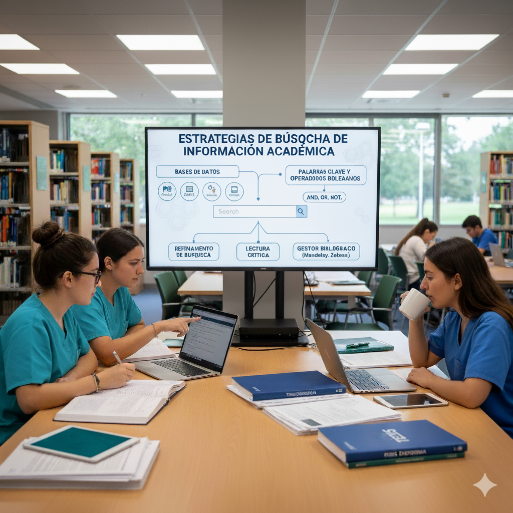 Objective. To determine the relationship between research skills and academic information search strategies among nursing thesis students at Universidad de Huánuco, Peru. Methods. Quantitative, observational, correlational study. The population consisted of 313 thesis students, from which a sample of 173 students was selected through stratified probabilistic sampling. The Research Skills Scale and a questionnaire on academic information search strategies were applied, both of which had been previously validated and tested for reliability. For inferential analysis, Spearman’s correlation was used with a significance level of p < 0.05. Results. Regarding research skills, more than half of the participants were at a developed level, with the instrumental dimension standing out (72.3%), while overall, 52% were classified as developed. Concerning information search strategies, there was a predominance of efficient use of databases (60.1%) and truncation tools (54.3%), although limitations were observed in the use of Boolean operators. At the inferential level, a positive and significant correlation was identified between research skills and search strategies (rho = 0.634; p < 0.001), with the problematization dimension showing the highest correlation (rho = 0.728; p < 0.001). Conclusions. It was determined that research skills are significantly and positively related to academic information search strategies.